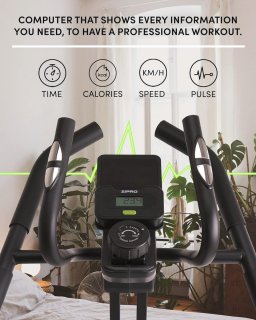 - Praktische trainingscomputer: houd tijd, snelheid en verbruikte calorieën bij zodat je je voortgang makkelijk controleert en doelen stelt.